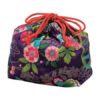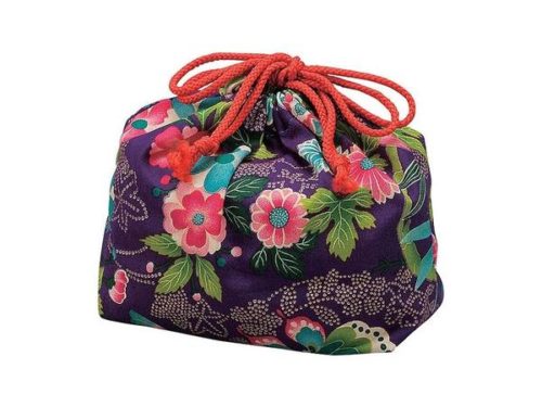 These richly hued bags are printed with traditional kimono fabric patterns. The Kimono pattern bag has predominantly purple hues (the royal color that symbolizes Kyoto and the Emperor). Each bag has a red drawstring.