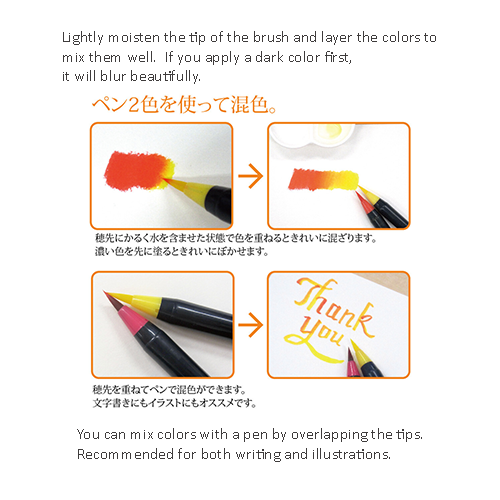 -You can express soft shades by soaking the tips with water or moistening the paper in advance.