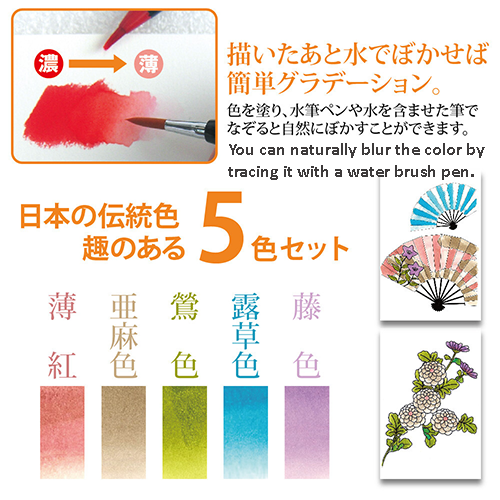 Akashiya Watercolour Brush Pen | 5 Omomuki Colour Set