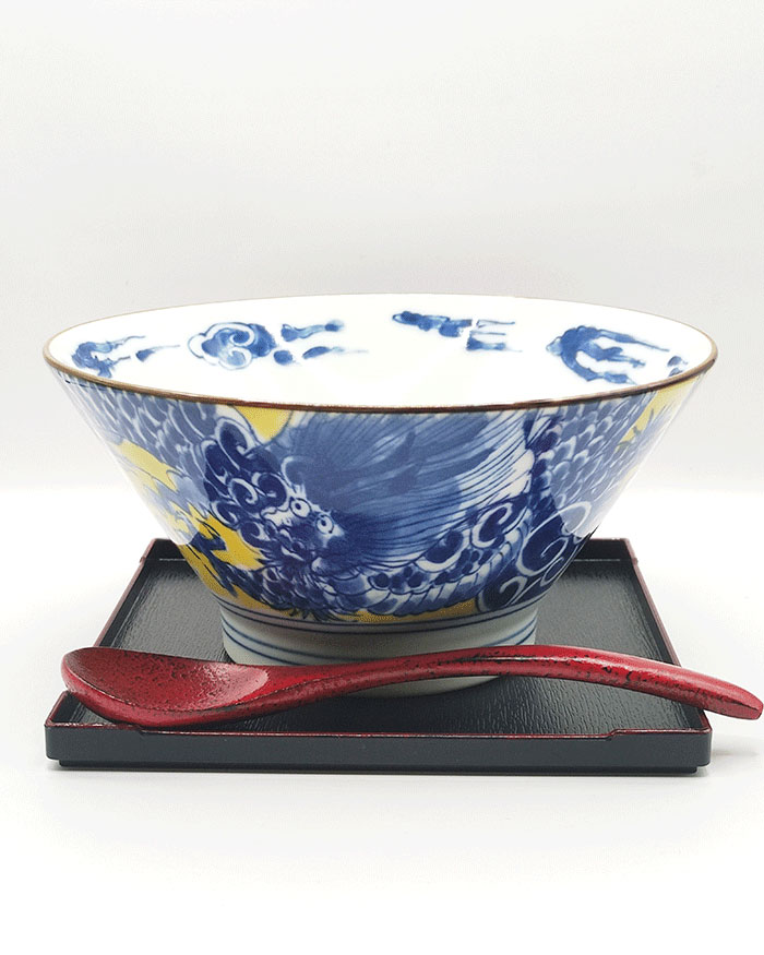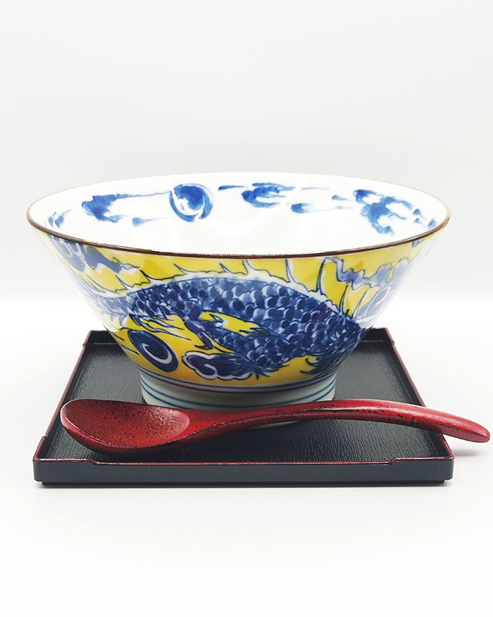 Dragon Ramen Bowl Set – Blue & Yellow Mino Ware