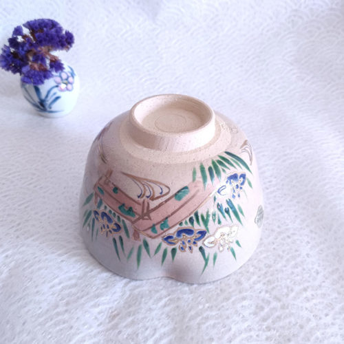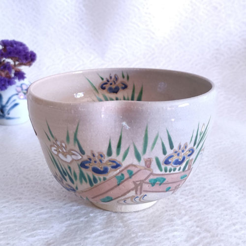 The title of this bowl ‘八ツ橋 Yatsuhashi’ is a pedestrian bridge, with alternating plate-shaped bridges in wetlands and ponds of Japanese gardens etc, where Japanese irises bloom.