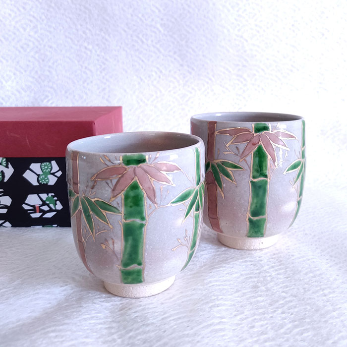 Handmade Yunomi Tea Cups Pair Gohonte Sagano