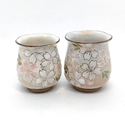 Handmade Yunomi Tea Cups Pair Icchin Sakura