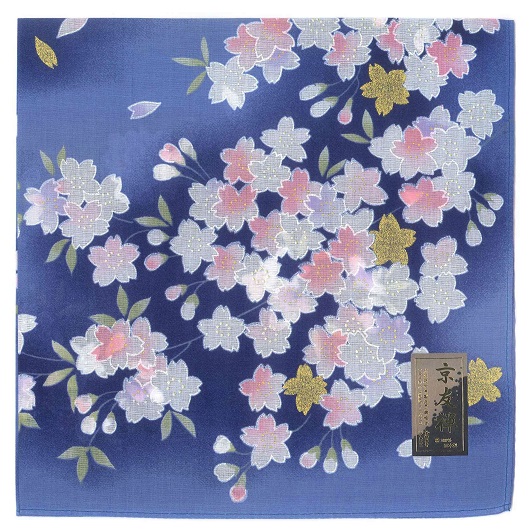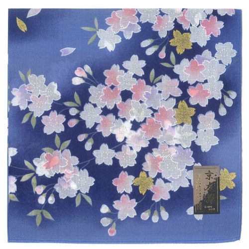 Japanese Handkerchief Kyo Yuzen Sakura | Dark Blue