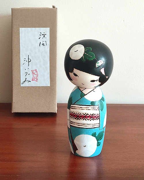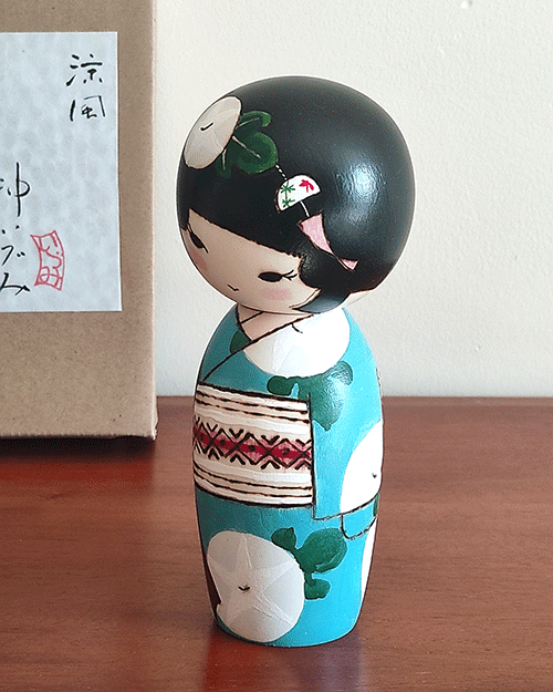 This Ryouhu (涼風, “Cool Breeze”) modern Creative Kokeshi was created by award-winning artist Izumi.