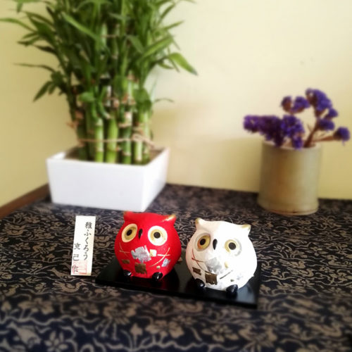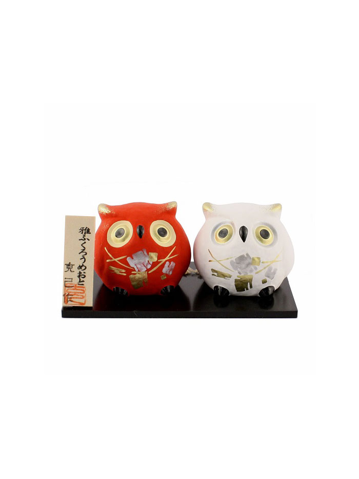 Japanese owl pottery bell Newly-weds