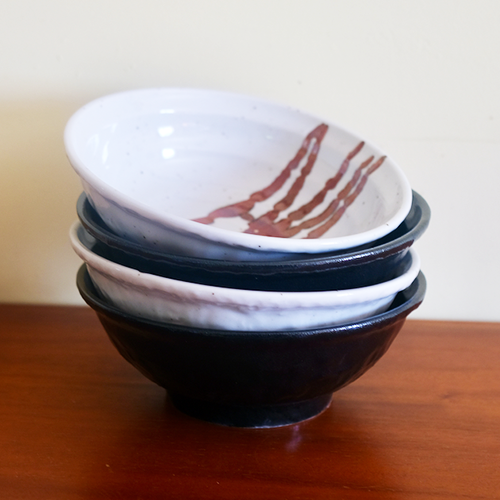 This Japanese Ramen bowl has a white colour with an accent of some lines with iron red glaze inside the bowl.