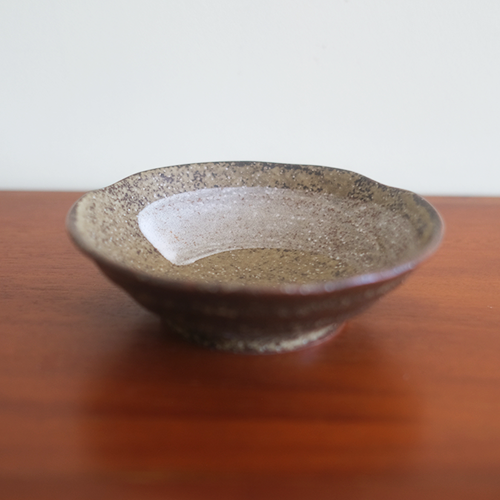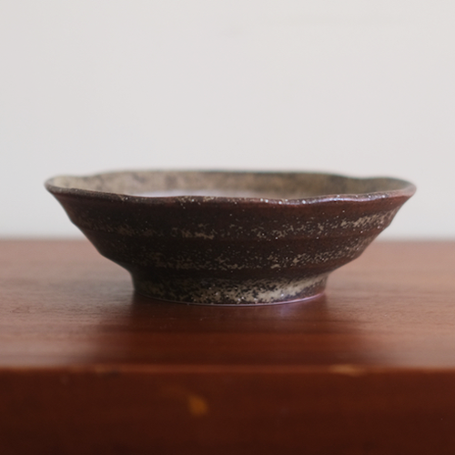 This Japanese shallow bowl has a dark brown colour with a brush stroke as an accent.