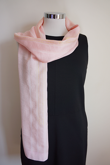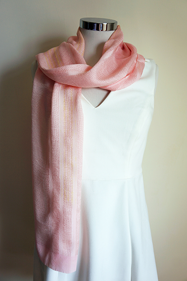 Silk scarf pink with a touch of gold and stripes.