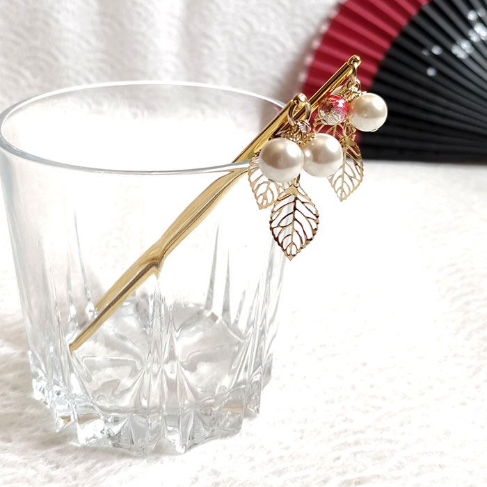 The gorgeous decorative leaves and pearl make your hairstyle look more attractive. The pearl has a golden marble effect to it which brings out the contrast between the two colours while the detailed leaves add a trendy touch.