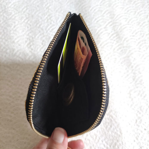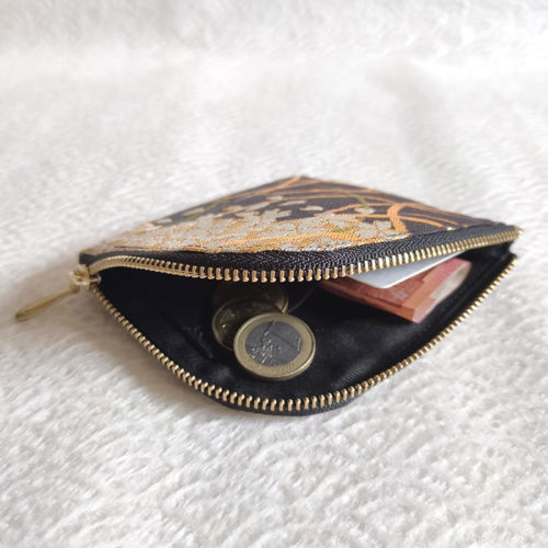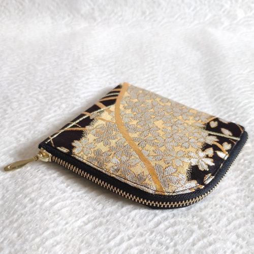 Kimono wallet with L Shape Zip | Black Gold Sakura