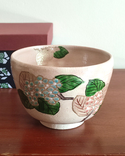 Kiyomizu-ware Handmade Matcha bowl Ajisai (Hydrangea)