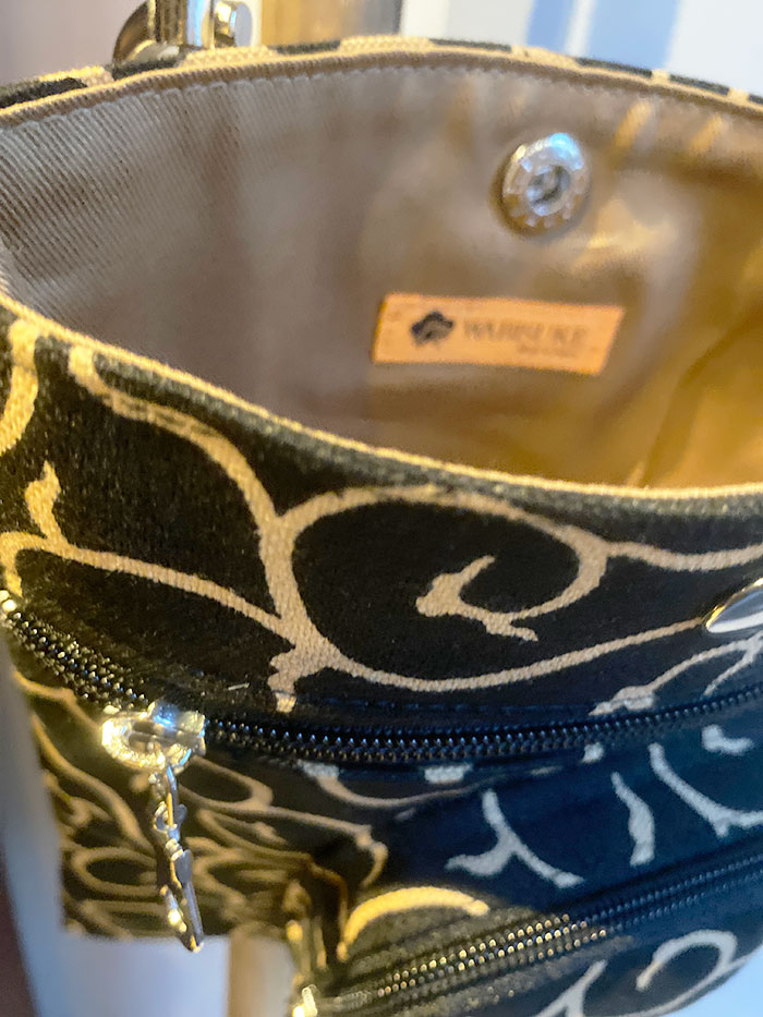 Durable textiles called Hampu 帆布 is used for the outer and Katsuragi カツラギ is used for the lining of these bags.