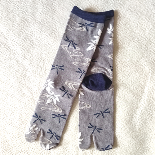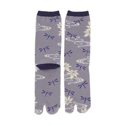 These men’s Tabi socks feature a sleek grey color with a refined Kagero (mayfly) design, inspired by traditional Japanese aesthetics.