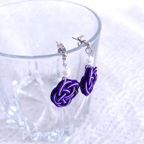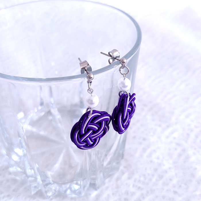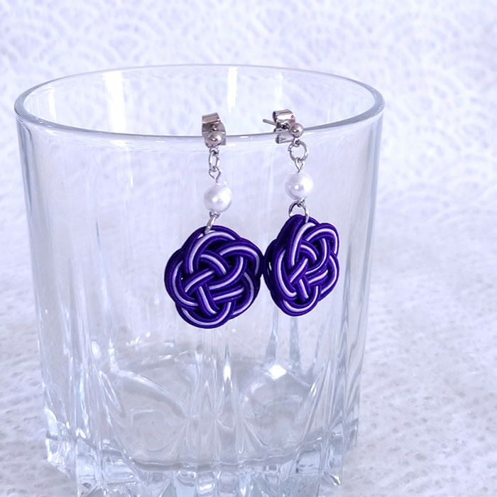 These earrings’ Ume flowers are made with 3 cords by hand.