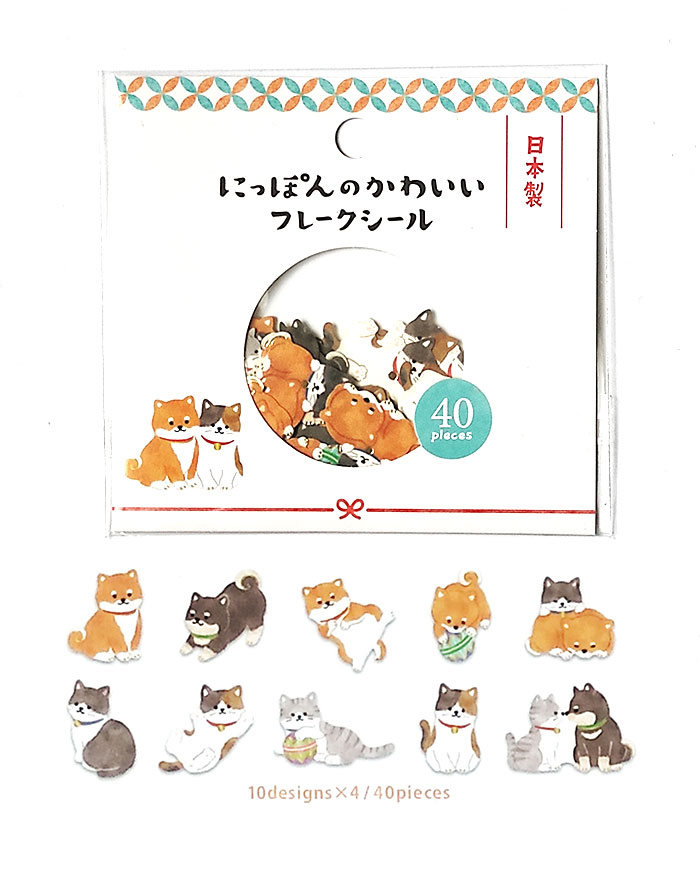 Nippon Kawaii Flake Stickers | Dogs & Cats (40 Pieces)