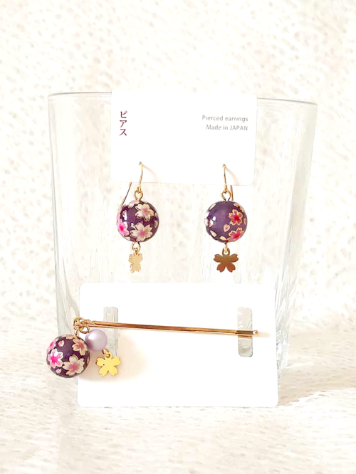 Sakuradama Earrings and Hair Pin | Purple
