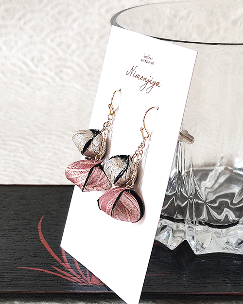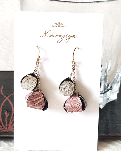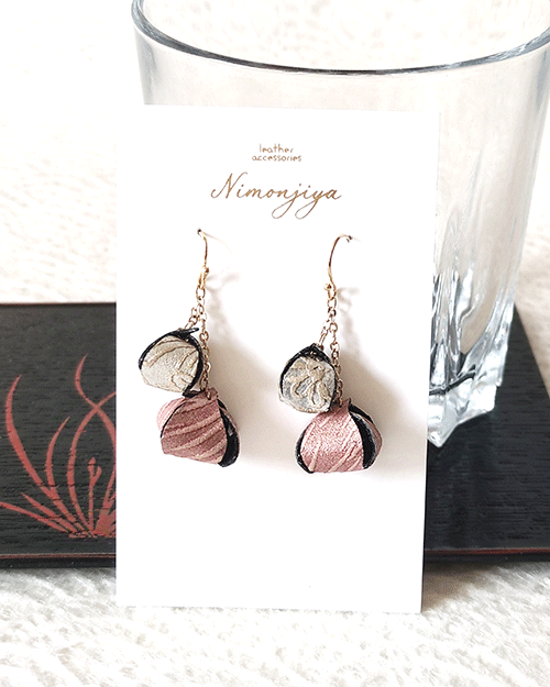 Smoky Pink & Silver Duo – Handmade Kyo-Yuzen Leather Earrings