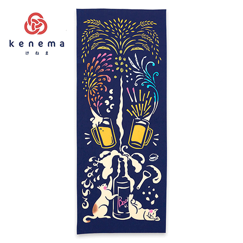 Tenugui Towel Chusen Dye | Neko with Beer