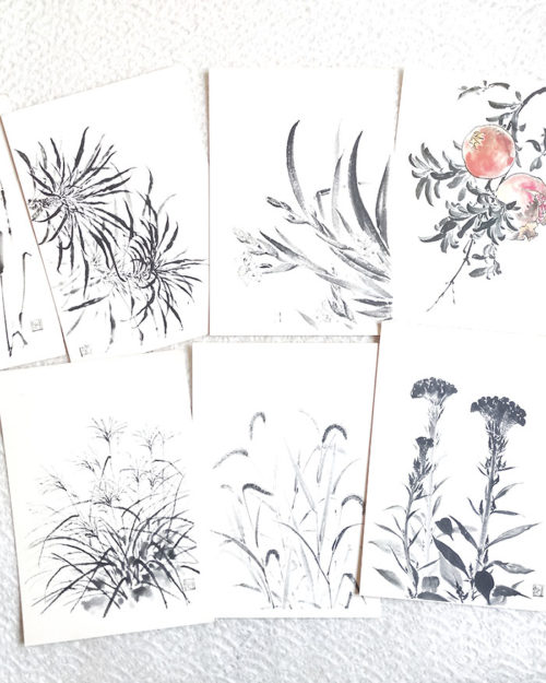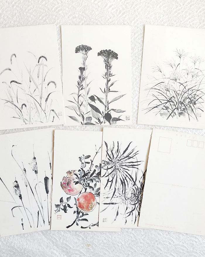 Vintage Showa-Era Sumi-e Postcard